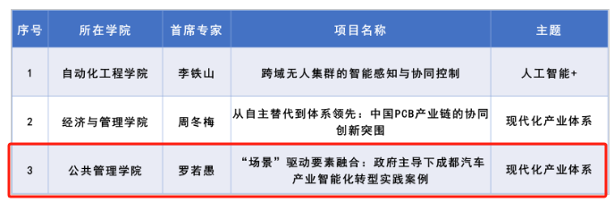 近日,教育部学位与研究生教育发展中心正式公布了2025年度主题案例立项结果。我院罗若愚教授作为首席专家申报的《“场景”驱动要素融合:政府主导下成都汽车产业智能化转型实践案例》(项目编号:ZT-2510614002)成功立项。